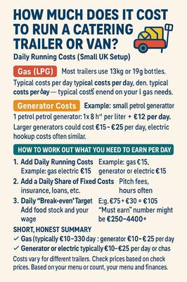 Can I have an idea of how much it costs to run a trailer/van per day please in terms of gas/electric/generator?