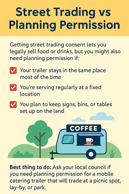 Getting Street Trading Consent from the council allows you to legally sell food or drinks in that area. But it doesn’t always replace planning permission.