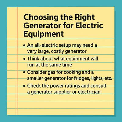 I am starting up my own catering business which is a pop up i only have electric equipment including a large griddle two single fryers one small under counter fridge and small under counter freezer. I don't know what kind of generator to buy any advice from any experience?